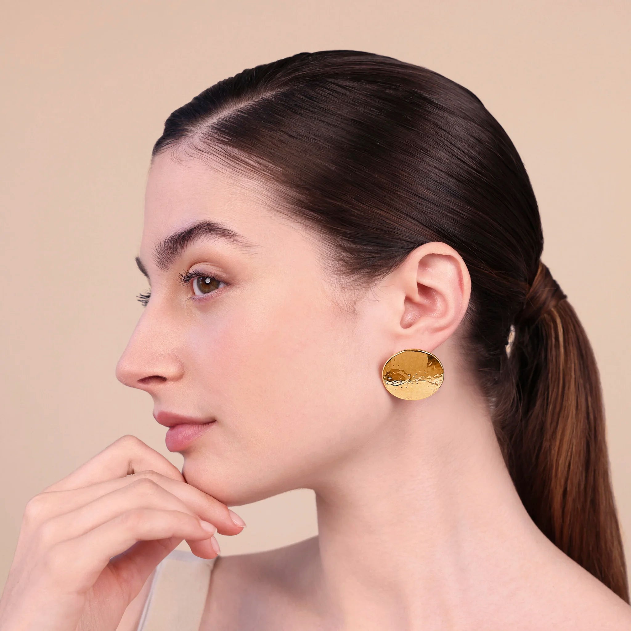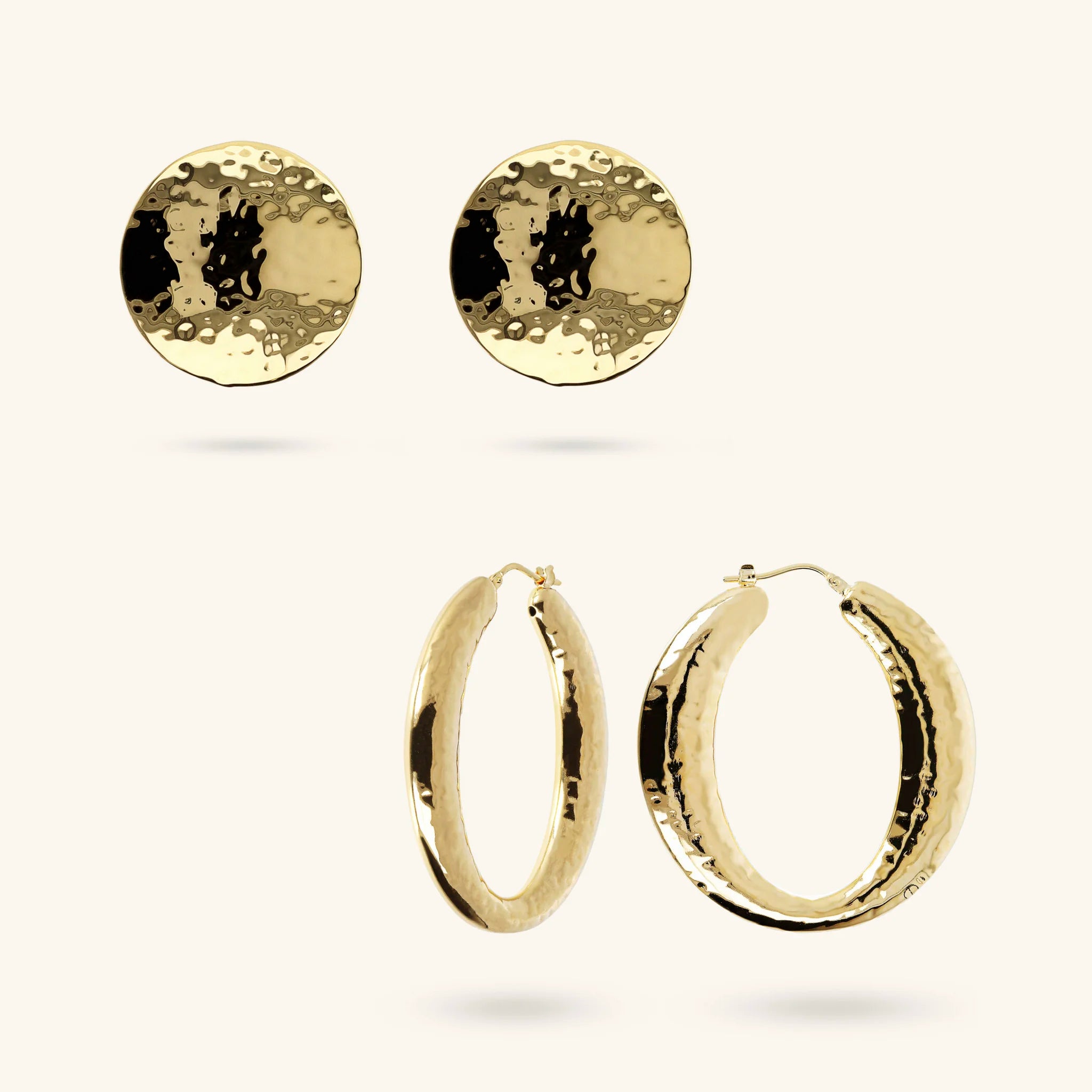 Set Orecchini a Bottone + Orecchini a Cerchio Ovali Martellati