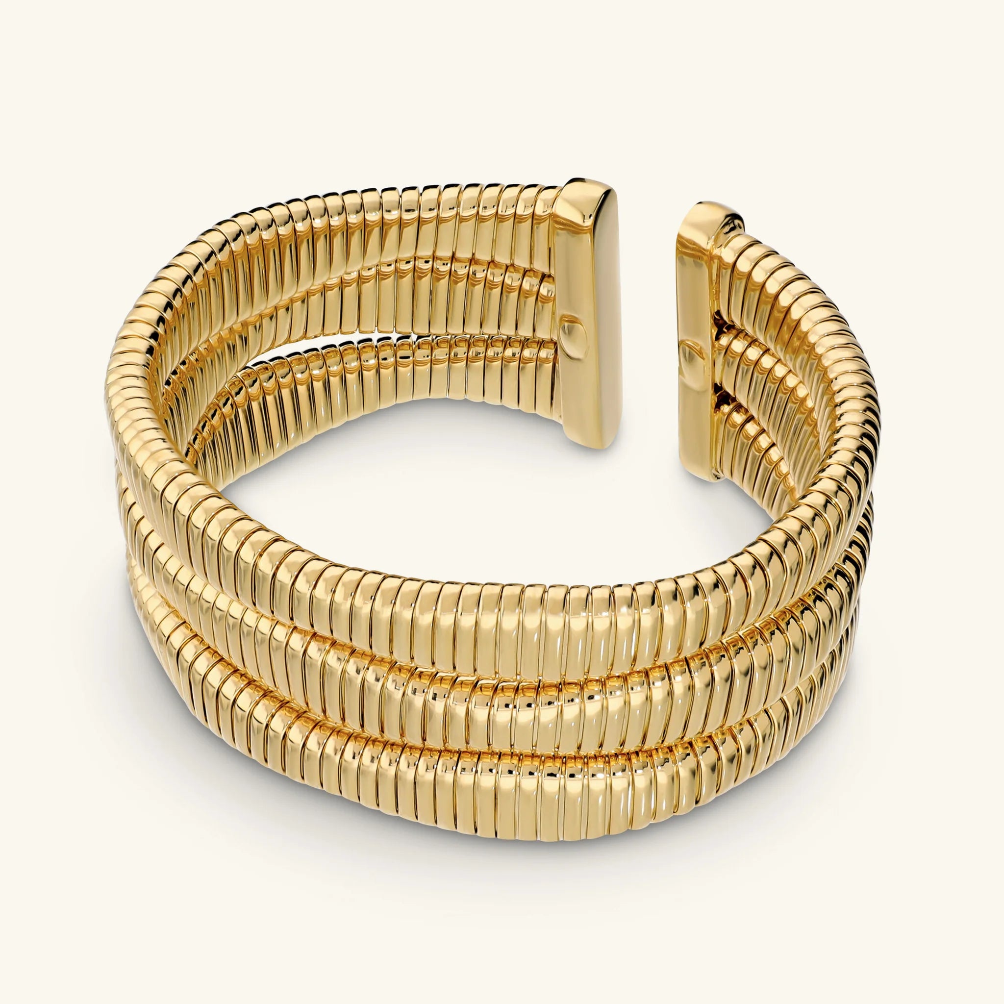 Bracciale rigido Etrusca Gioielli realizzato in lega Golden, placcata Oro giallo 18kt, con maglia tubogas, effetto onda.
