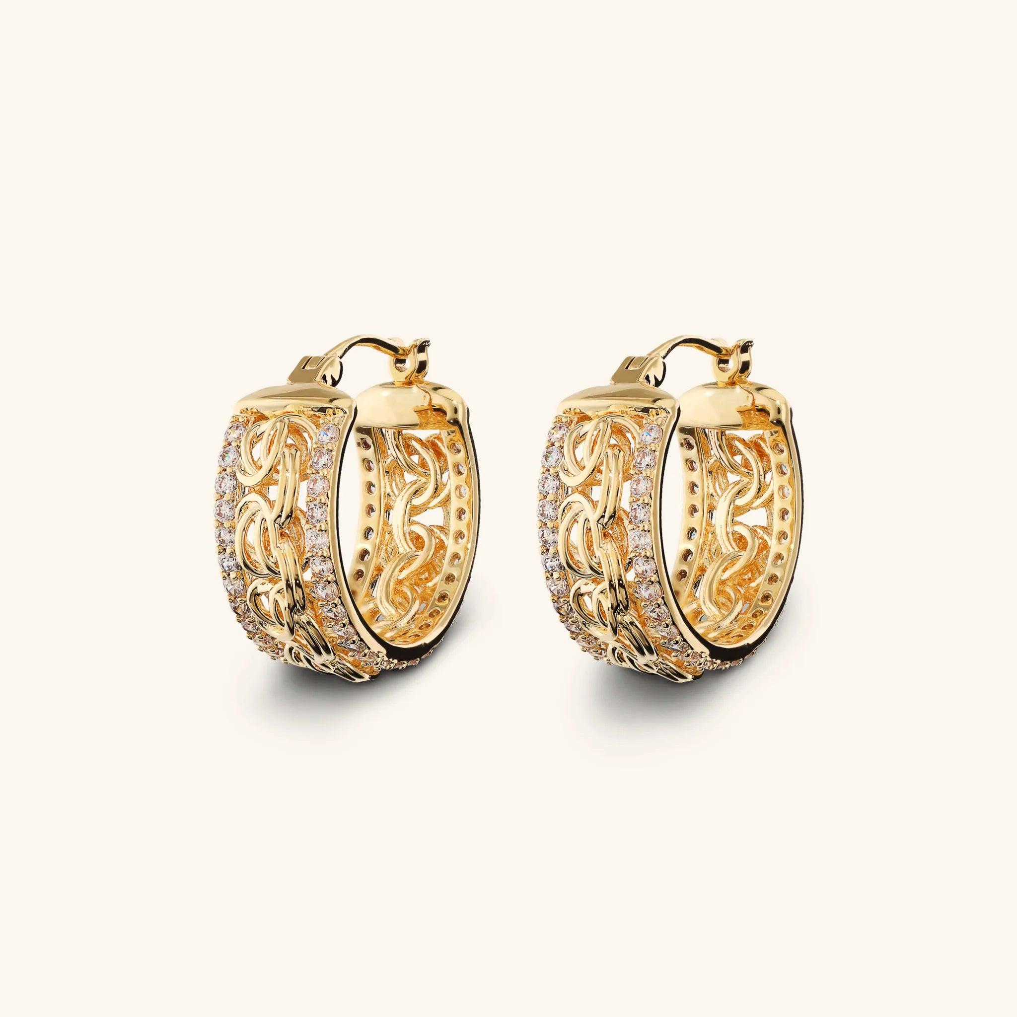 Orecchini a Cerchio Catena Bizantina con Rondelle in Pavé di Cubic Zirconia